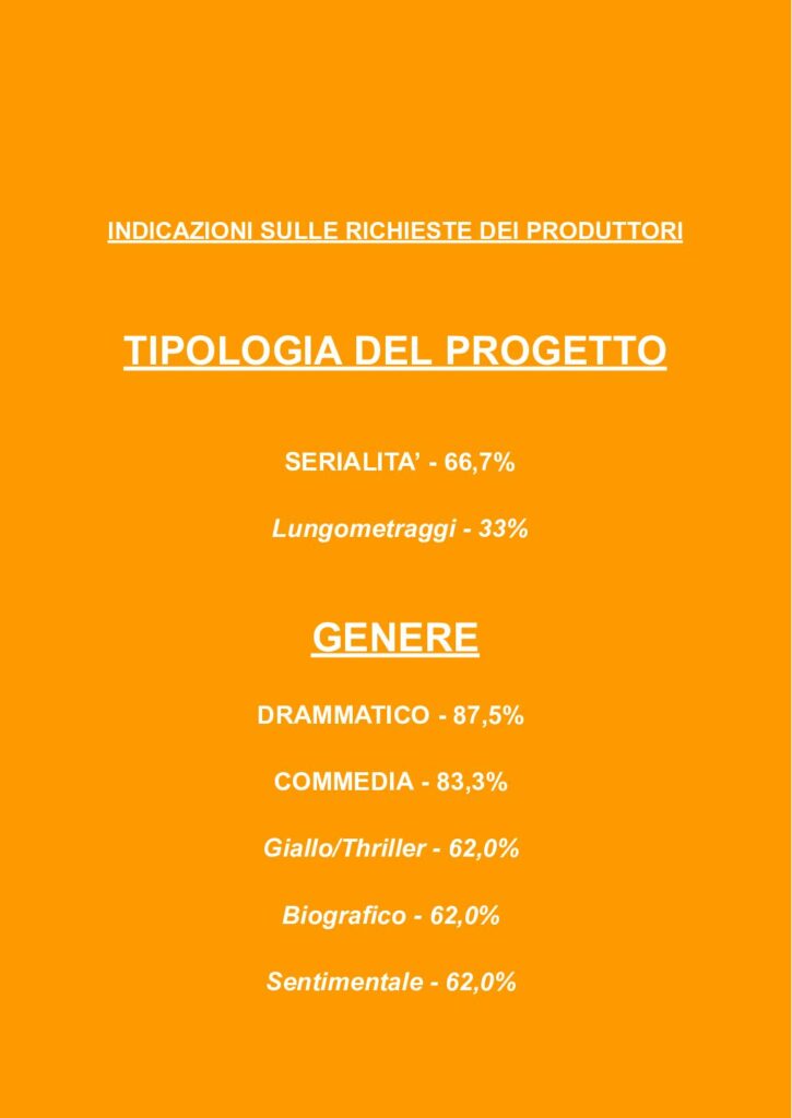 Lo stesso 12 luglio 2024, si sono aperte le iscrizioni per le case di produzione che si sono concluse il 13 settembre. I produttori hanno segnalato i propri obiettivi di ricerca che sono riassunti nel seguente schema.