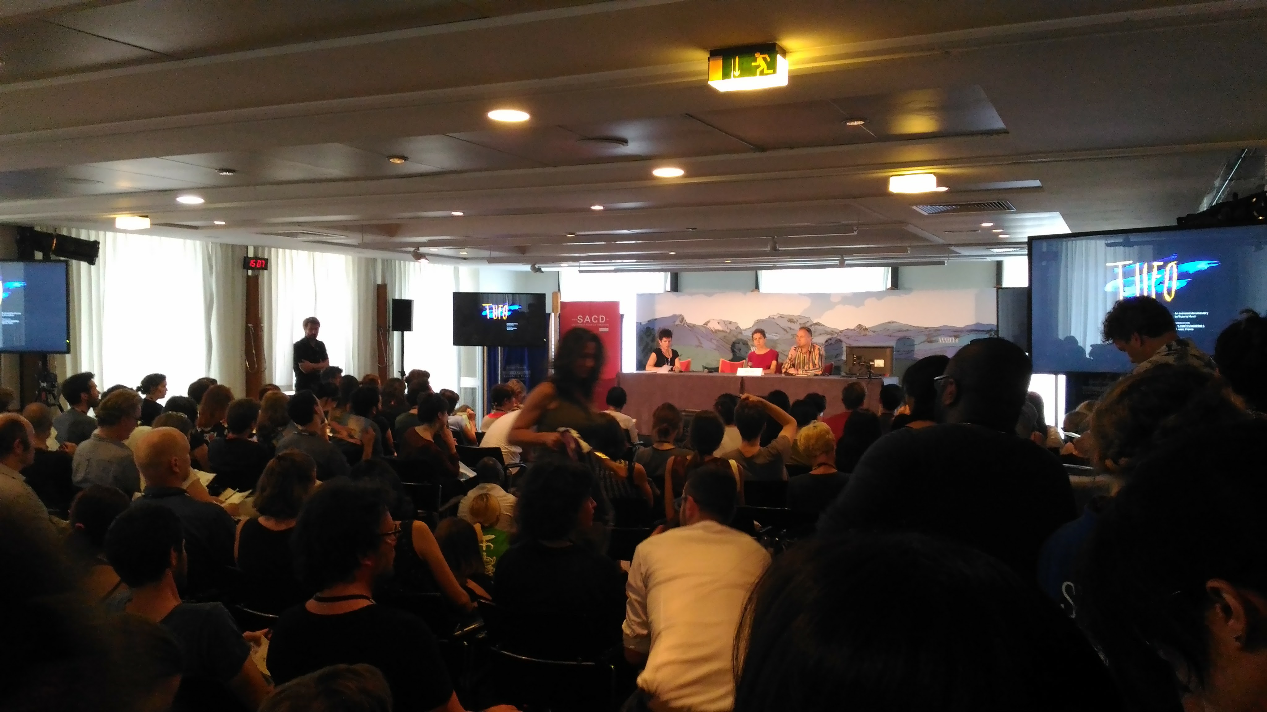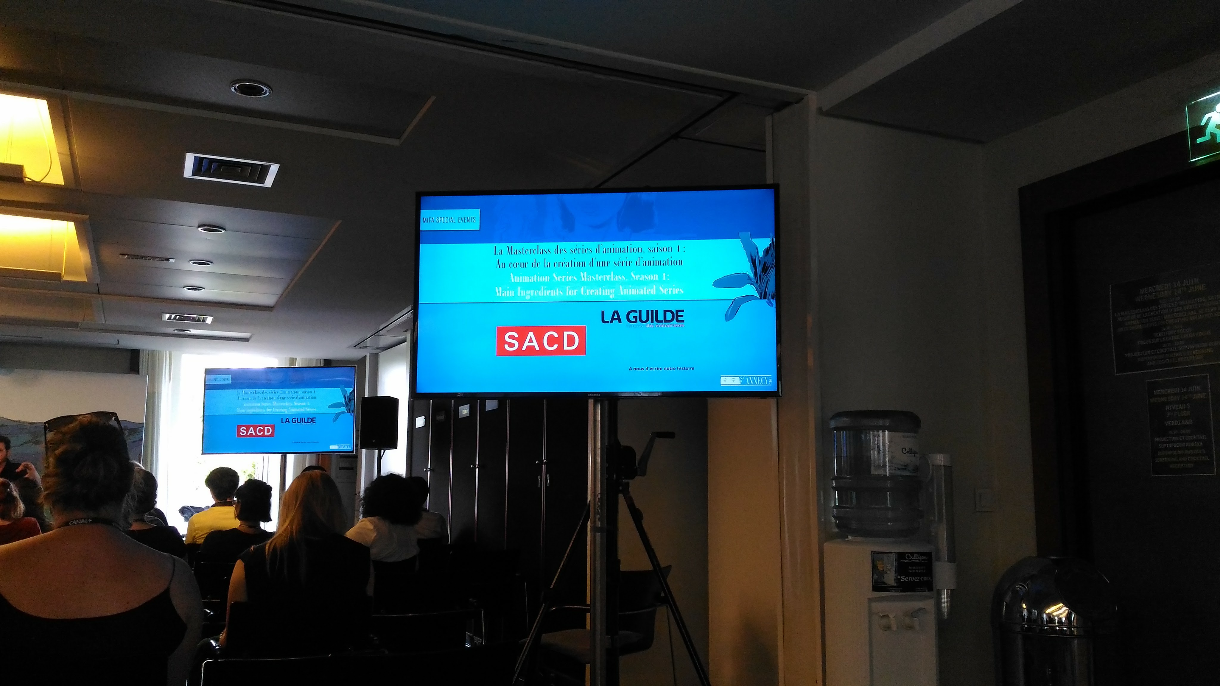 Per chi ė abituato ai festival di cinema saltano subito all’occhio due fatti, peculiari dell’animazione: l’assenza di attori, per ovvie ragioni, e lo scarso protagonismo dei registi. Il regista in questo mondo è un tecnico come gli altri. La parte del leone la fanno gli artisti visivi, suddivisi in una pletora di ruoli: story artists, layout artist, character designer, animatori e via dicendo. Anche gli scrittori sono ben rappresentati, sia come autori di libri, dal quale attingere per le storie, sia come sceneggiatori. La SACD, società di collecting come la SIAE, ha molti spazi a disposizione e organizza incontri e conferenze, anche in collaborazione con La Guilde degli sceneggiatori.