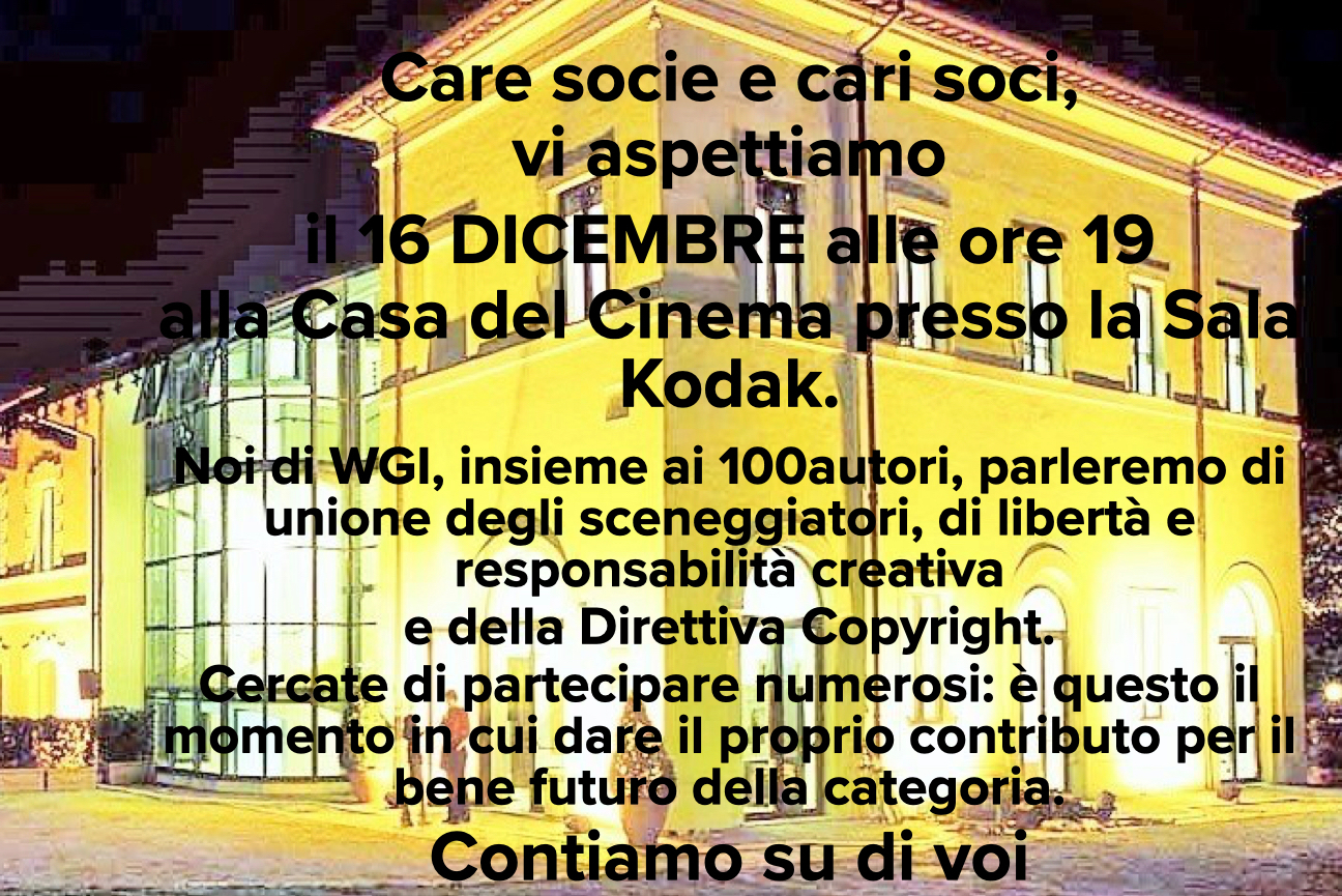 Noi di WGI, insieme ai 100autori, parleremo di unione degli sceneggiatori, di libertà e responsabilità creativa