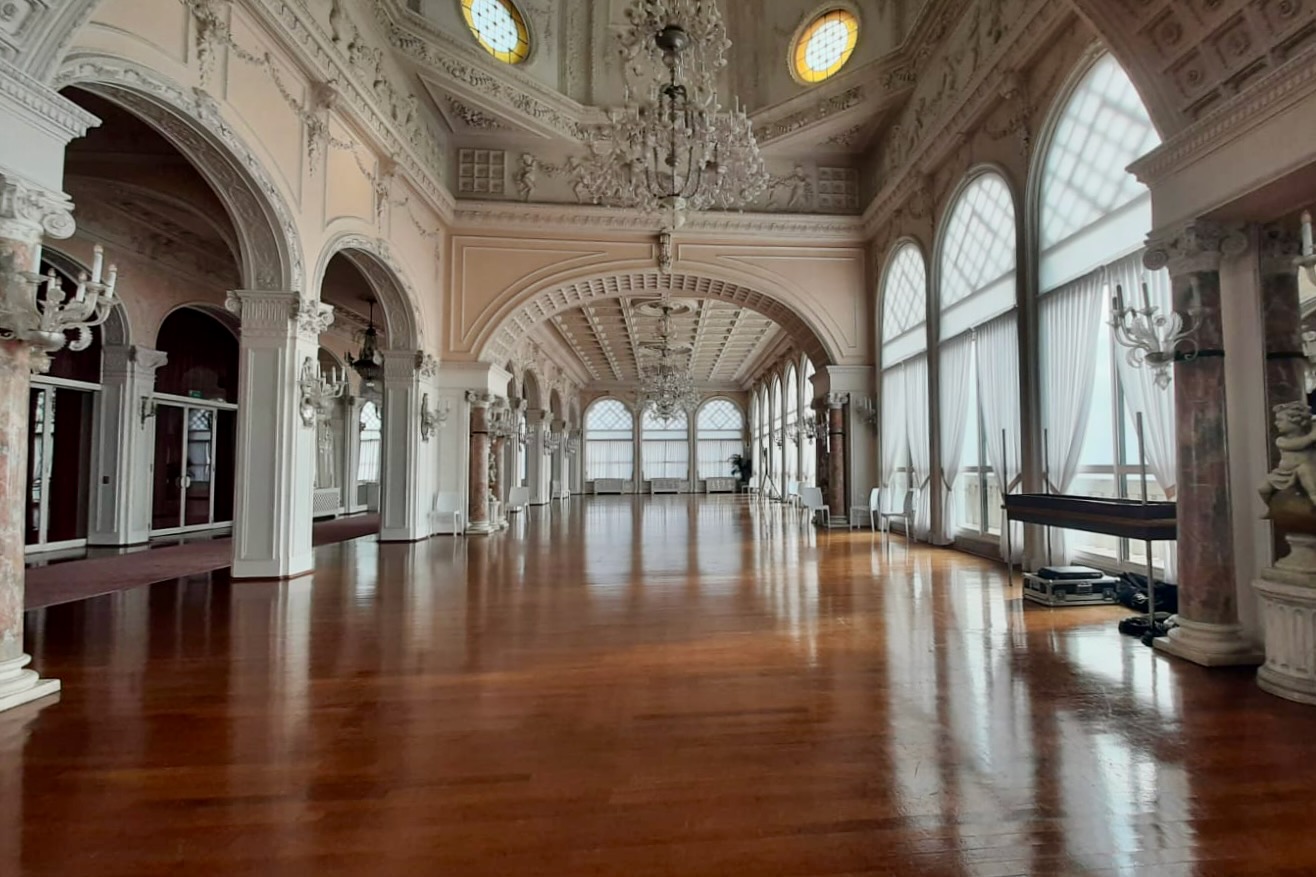 Perché il Cinema, il gigantesco lenzuolo fuori scala, fa questo: trasforma i luoghi e costruisce mitologie. Quei centinaia di metri quadri di affreschi erano uno splendido salone di un albergo in stile moresco, ma ora sono il monumento ad un sentimento – un modo di sentire questo sogno collettivo chiamato cinema.
