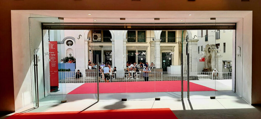 Il pomeriggio si avvia a chiudersi. Da dentro la sala stampa dell’Overlook Hotel lo sguardo di perde sul celeste anemico del mare, sulla terrazza del palazzo del cinema. Bandiere di ogni paese garriscono impettite. Fanno il loro lavoro di segnalazione: Mostra Internazionale d’Arte Cinematografica.