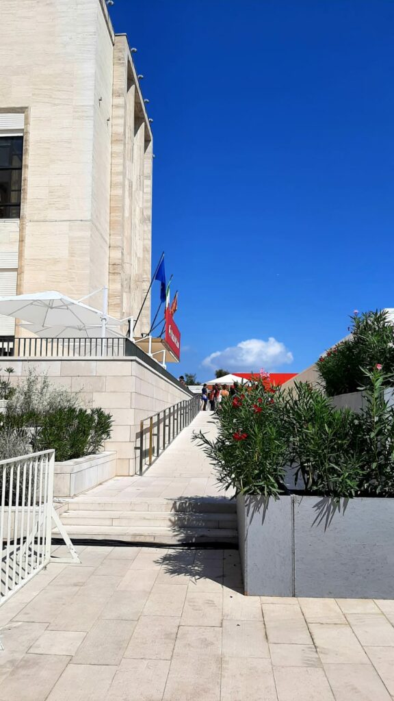 Lei, la donna della macchina, in un ruolo chiave dell’intera organizzazione Biennale di Venezia – e dunque con uno sguardo che ben coglie le dinamiche della Mostra, ma non solo – si materializza all’improvviso, sorprendendomi. Comincio ad attribuirle poteri magici. Eravamo stati interrotti – dalla solita emergenza del momento. Ora vogliamo riprendere il filo. Il bar è tutto per noi. La Mostra è praticamente finita. Oggi è solo passarella per i vincitori. Qualche sparuto cinefilo si affretta a vedere gli ultimi scampoli di idee, narrazioni, formati. Per dire, oggi ci sarebbero collezioni di corti e poi, per chi riesce, addirittura un Renoir…