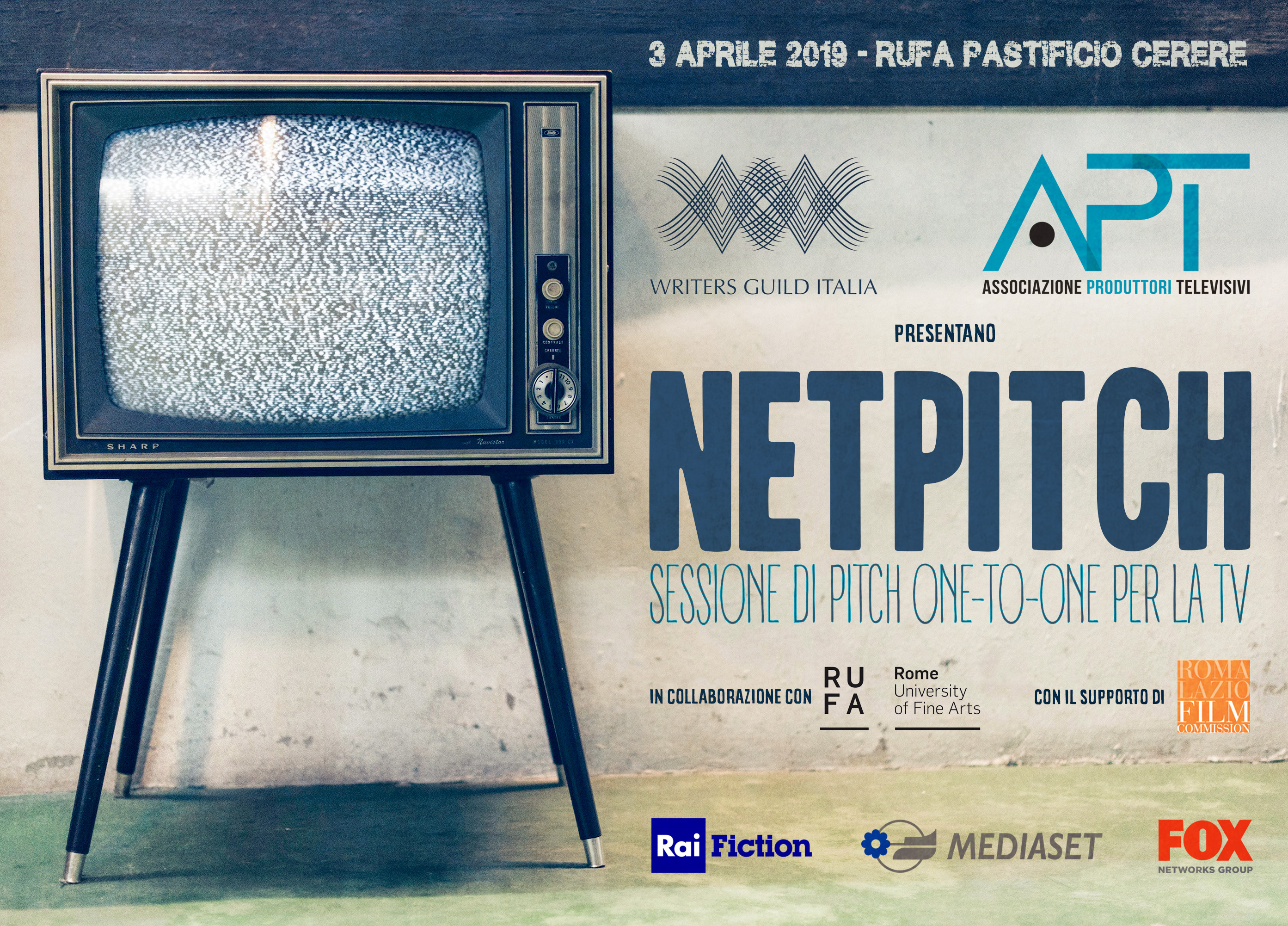 Netpitch è un evento organizzato da WGI – Writers Guild ItaliaAPT – Associazione Produttori Televisivi, in collaborazione con RUFA – Rome University of Fine Arts; con il supporto di Roma Lazio Film Commission; il patrocinio di Mediaset Fiction, Fox International Channels, media partner Rai Fiction.