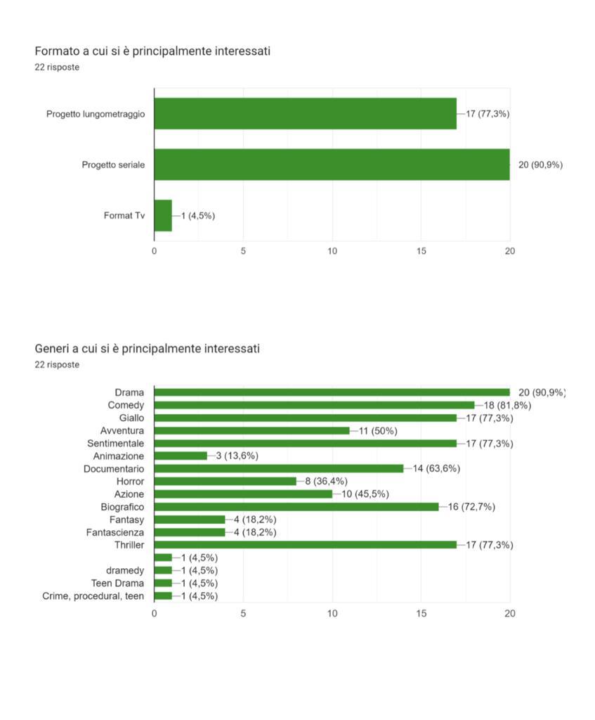 I progetti seriali risultano essere quelli su cui i produttori riversano la maggior attenzione (90,9%), seguiti dai lungometraggi (77,3%), mentre i format TV sono quelli che riscuotono il minor interesse (4,5%).