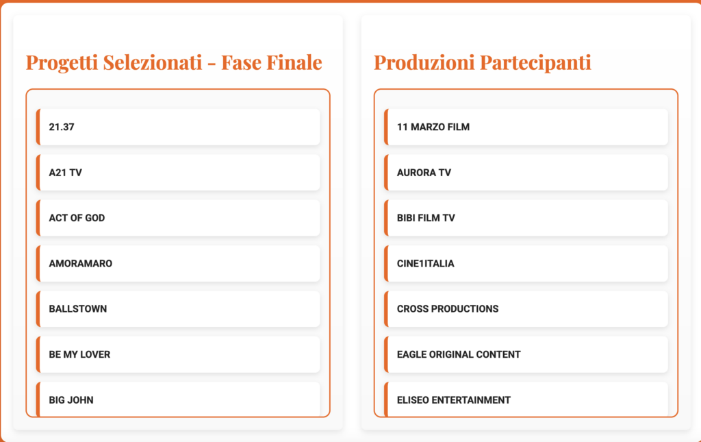 Lo stesso 12 luglio 2024, si sono aperte le iscrizioni per le case di produzione che si sono concluse il 13 settembre. I produttori hanno segnalato i propri obiettivi di ricerca che sono riassunti nel seguente schema.