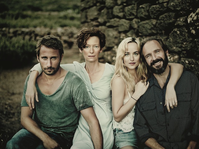 Studio Canal had approached Luca several time to see if he would be interested in remaking and initially he was not so interested in the idea of a remake. And at the same time he was reading script for a studio project in America and read two of my scripts for different projects, and there was something in my writing that he thought: “If David would like to work with me on this remake of La piscine maybe we could do something interesting with it together”. And off course I jumped the chance because I have been working in Hollywood for a decade and trying to write very precise, very ambicious scripts and then not having them made or having them made and then been rewritten by directors or by others people. When the film finally gets to the theater I can’t take my friends anymore, because it’s so disconnected from the work I did on it. So I was getting very tired of having movies come out with my name on it that weren’t at all reflective of what I was trying to do. So I took a jump to the chance to work on that, with an european studio, to try to have a collaboration that was less disposable. That’s exactly how this turned out: I’ve had such a strong collaboration with Luca, and then with Tilda, Ralph, Matias and Dakota, when they came on board, there was such a wonderful way of working on a narrative because everyone was sort of teasing out the things in the script they really loved and we were adding to the script every day on the set, just to honour the interesting conversations everyone was able to have about the anxiety they were bringing to the table, the personal connections to the even most subtle things about the characters, we put them into full bloom because the actors wanted to go there. When you have people who are skilled as these people saying let’s take more risk, let’s be less on point in term of a consistent tone, lets be even less processed in term of our structure. I credit the actors so much for being willing to go in directions that were counterintuitive… It’s one of the most beautiful collaboration, something that would never happen in Hollywood.