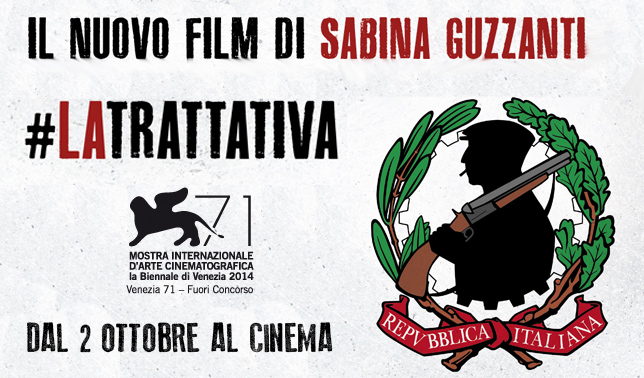 Sabina Guzzanti ha scritto e diretto  LA TRATTATIVA . Il film viene presentato nella sezione Fuori concorso e verrà proiettato oggi, 3 settembre 2014, alle 22:00  nella Sala Grande e, domani alle 17.30 al PalaBiennale.
