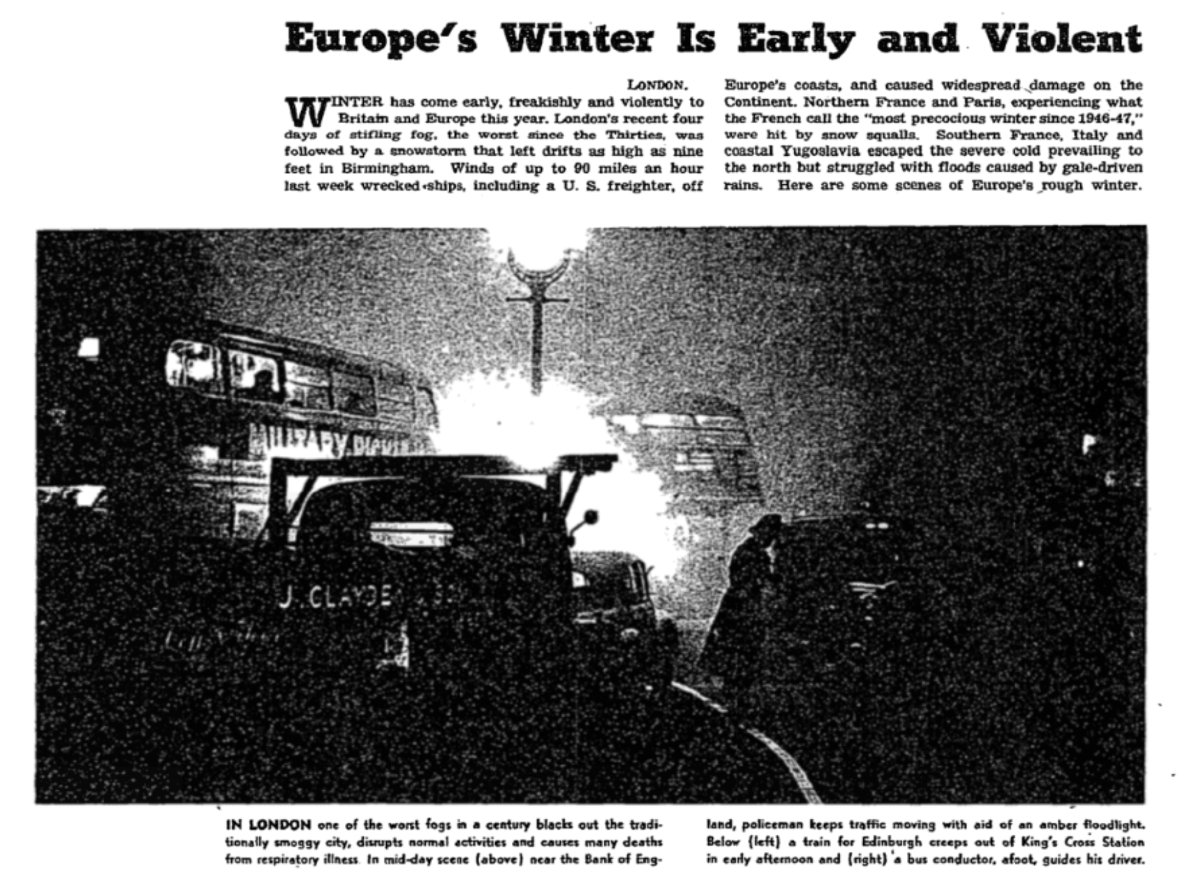 “A Londra, una delle peggiori nebbie in un secolo oscura la città tradizionalmente smog.”