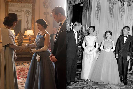 | Marzo 1962. Jackie Kennedy fa ritorno a Londra, per incontrare la regina Elisabetta. | – Jackie si scusa con Elisabetta riguardo le sue affermazioni, confessando di aver preso delle medicine (droghe) assieme al marito per tirarsi su e calmarsi, giustificando così le sue parole detta alla cena.