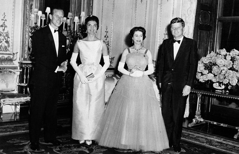 La Regina Elisabetta, il Principe Filippo, John e Jackie Kennedy al Buckingham Palace