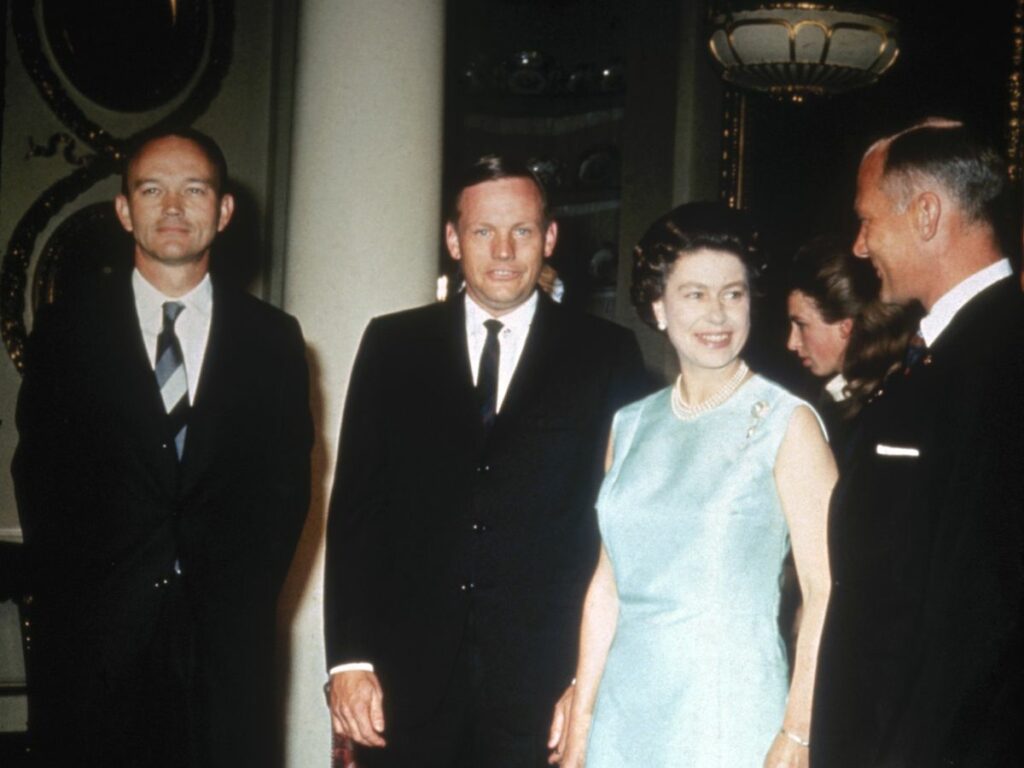 | Dopo che Armstrong, Aldrin e il collega astronauta Michael Collins (che aveva pilotato il modulo di comando invece di unirsi all’atterraggio lunare) sono tornati sulla Terra il 24 luglio 1969, sono stati costretti a trascorrere tre settimane in quarantena, nel caso in cui fossero portatori di malattie lunari. Successivamente gli astronauti hanno intrapreso un tour in 24 paesi nel corso di 38 giorni. Il gruppo è arrivato in Inghilterra il 14 ottobre e si è recato all’Ambasciata degli Stati Uniti. Ha interagito con una folla festante prima di dirigersi a Buckingham Palace per incontrare la regina Elisabetta II, il principe Filippo e altri membri della Famiglia Reale. | Elisabetta acconsente a ricevere gli astronauti Neil Armstrong, Buzz Aldrin e Michael Collins a Buckingham Palace. Filippo è entusiasta all’idea di avere un colloquio privato con quelli che considera i suoi nuovi eroi, ma ne resta tuttavia deluso quando questi si presentano tutti e tre con il raffreddore. Le risposte degli astronauti non soddisfano le aspettative del Principe, inoltre essi affermano che sulla Luna regnava il silenzio e che per i troppi impegni e mansioni burocratiche dello sbarco non hanno potuto godersi a fondo l’unicità dell’evento. La notte seguente Elisabetta tenta di spiegare a Filippo che dovrebbe vedere i tre astronauti come uomini adatti al lavoro che hanno compiuto, non figure pubbliche o saggi esseri umani, bensì semplici tecnici con esperienza di volo. |