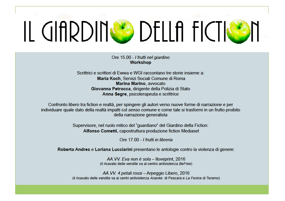 WGI – Writers Guild Italia e Ewwa- European Writing Women Association sono associazioni entrambi giovani e dinamiche, con lo stesso obiettivo: combattere la dispersione del pensiero e fare squadra attorno ad alcuni temi come le tecniche e le condizioni della narrazione scritta e visiva, che si misura con un pubblico generalista. Per dirla in due parole, lo spazio della cultura pop.